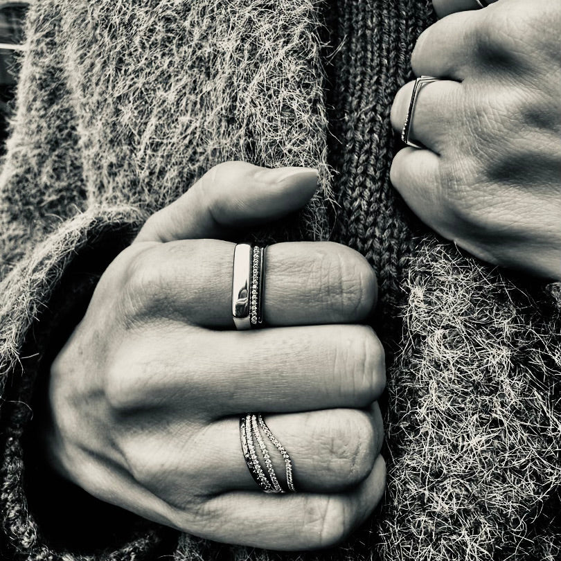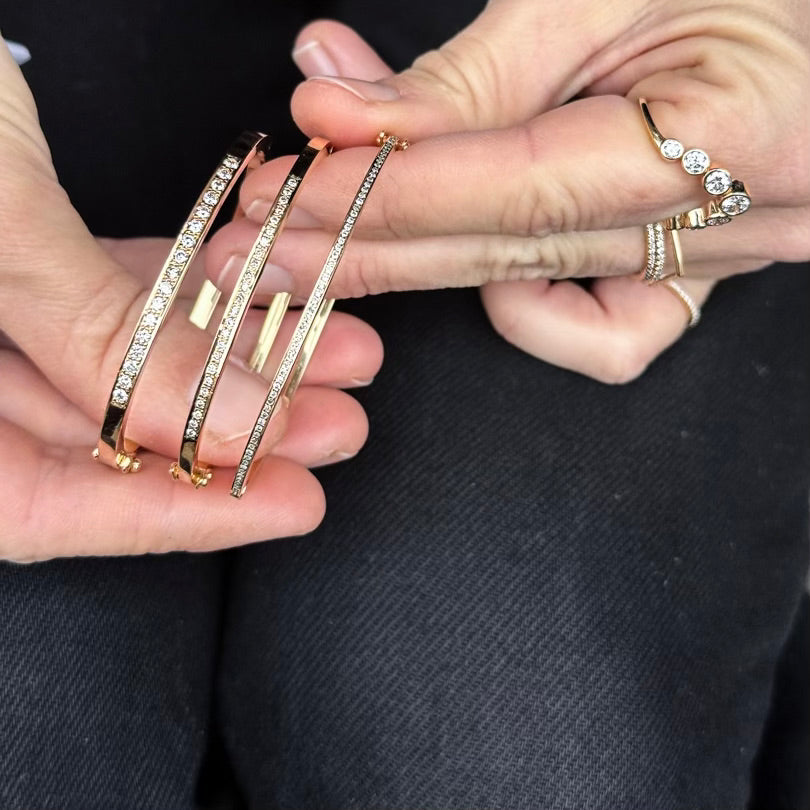 DIAMONDS, 1/2-Line Princess Bangle 1,85ct, gold/white