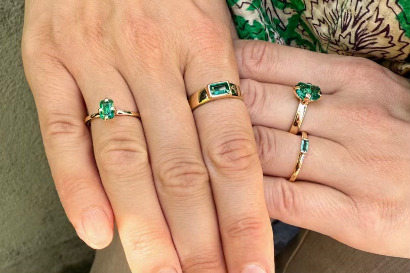 ZAMBEZI, Leya Baguette Ring 0,18ct, Gold/Emerald