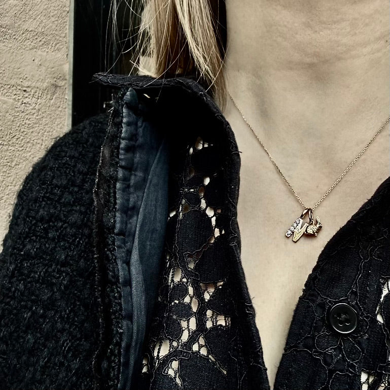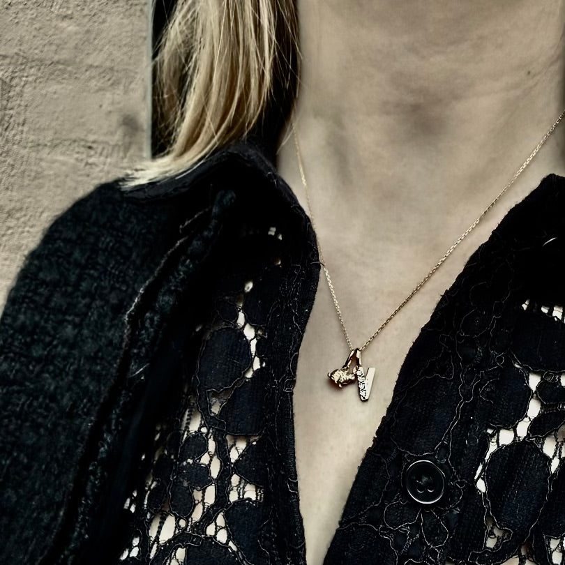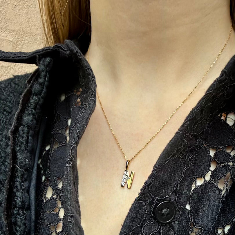 LETTERS, V Diamond Pendant 0,10ct, Gold/Diamonds