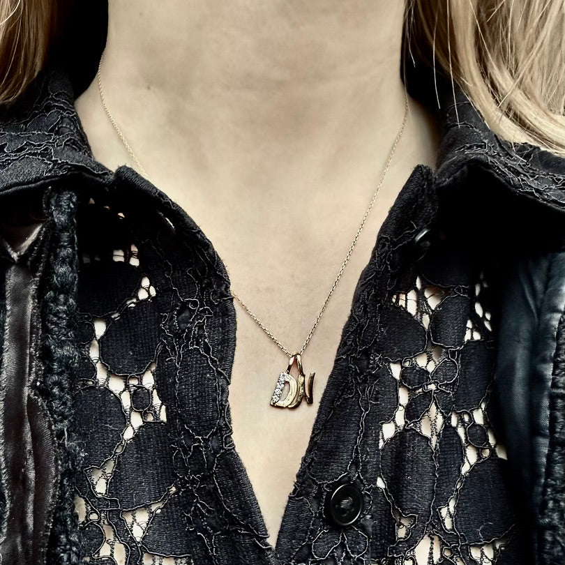 LETTERS, D Diamond Pendant 0,10ct, Gold/Diamonds