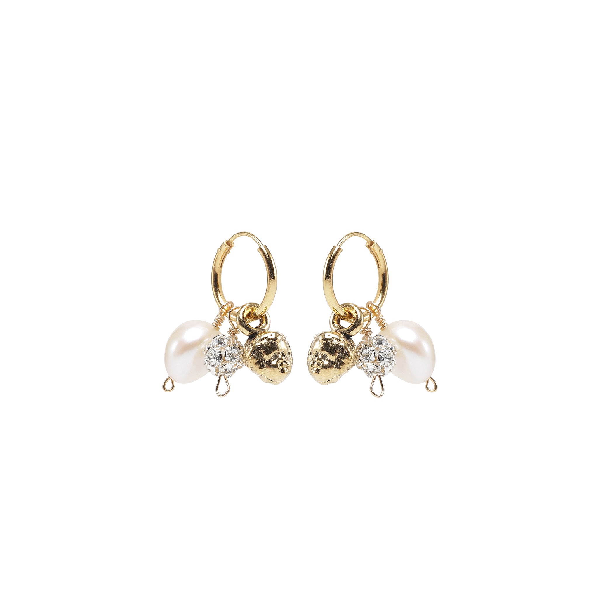 Sweet angle hoops, showing off a cute angle, a pearl and a krystal ball. You can use all 4 parts individually, - hoops single, and each pendant single as well...