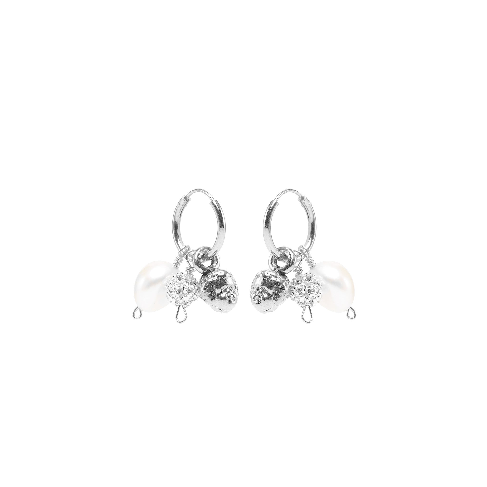 Sweet angle hoops, showing off a cute angle, a pearl and a krystal ball. You can use all 4 parts individually, - hoops single, and each pendant single as well...