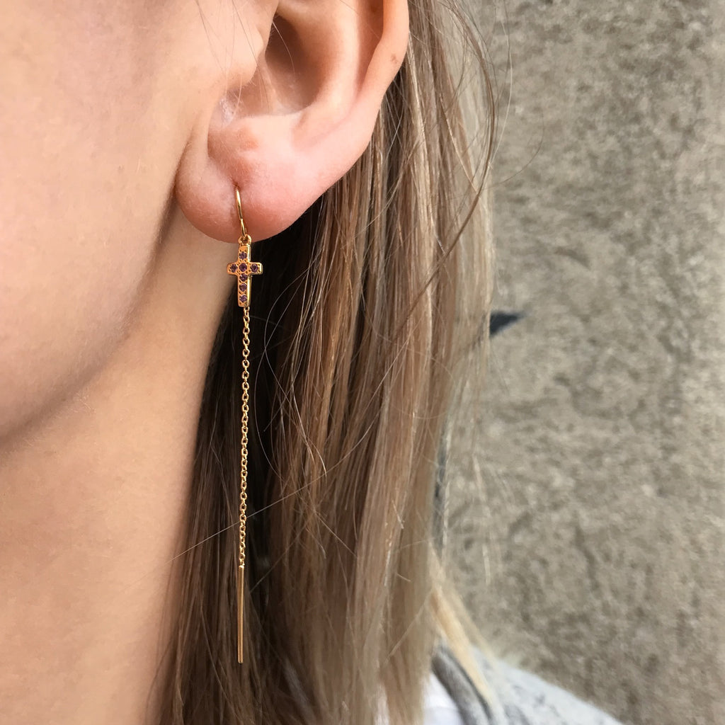 Studded small featherlight cross dangles - we hope the karma will guide and protect you, and help you find your way....