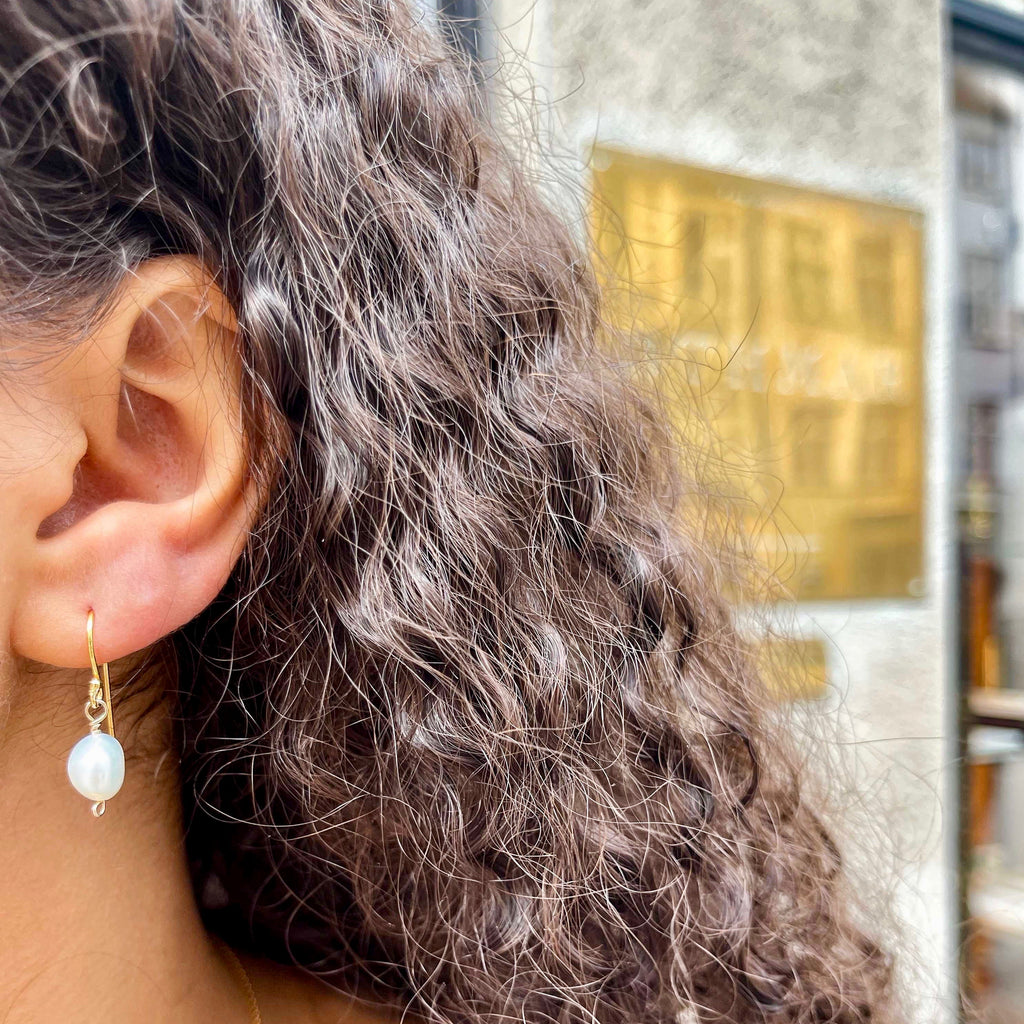 DROPS DELIGHT, Nugget pearl Earrings, Gold/White