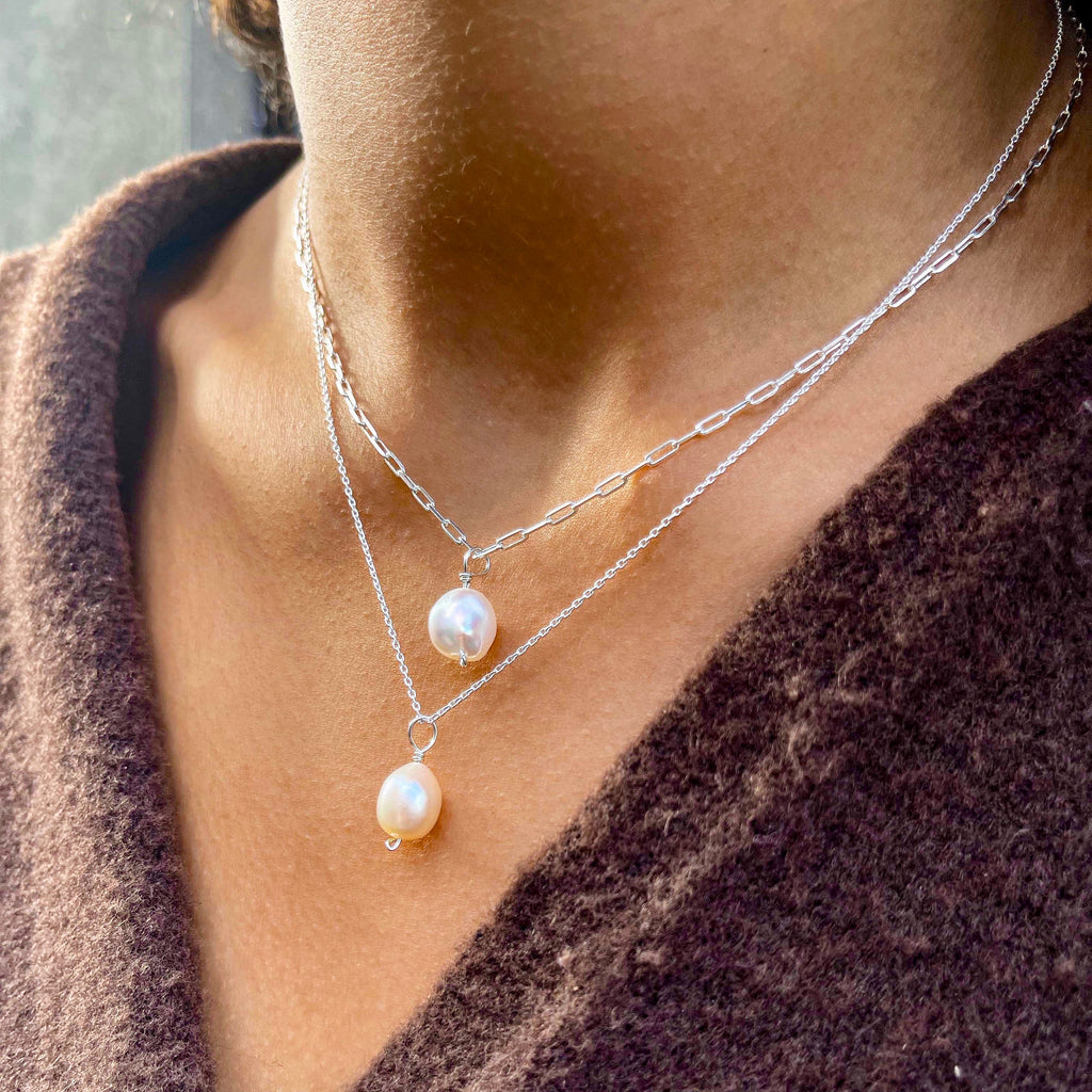 DROPS DELIGHT, Nugget pearl necklace, Silver/White