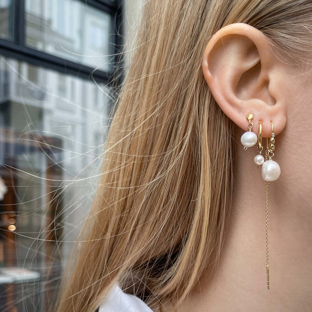 Round golden stud set with a cool large baroque pearl. Wear as single/set or spice up to an even cooler note in a FLOW with similar styles ...