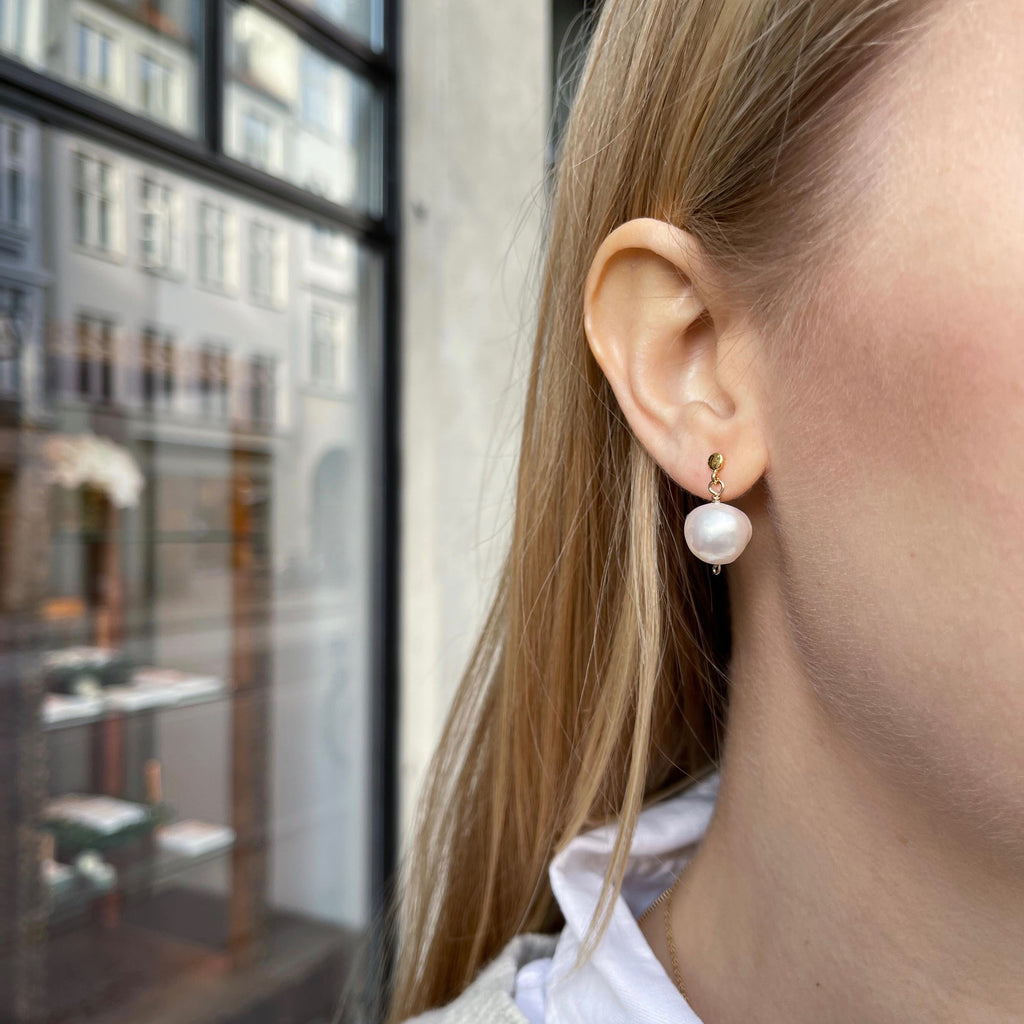 Sold OutDROPS DELIGHT, Pearl Studs, White baroque/gold