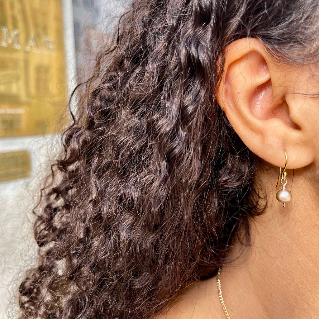 DROPS DELIGHT, Tiny rose pearl Earrings, Gold/Rosy