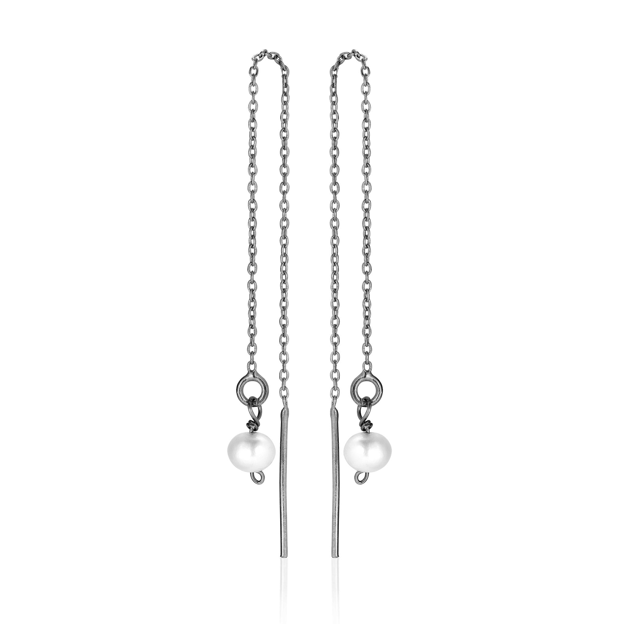 Very moving cool dark silver dangles set with a tiny pearl. Decide the length simply by pulling the thread...
