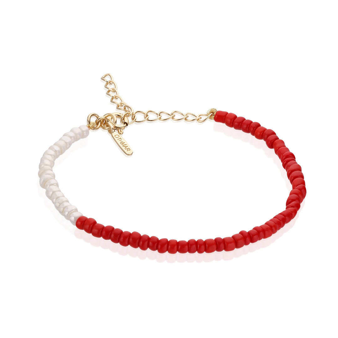SANTORINI, Fira Bead Bracelet, Red-White/Golden