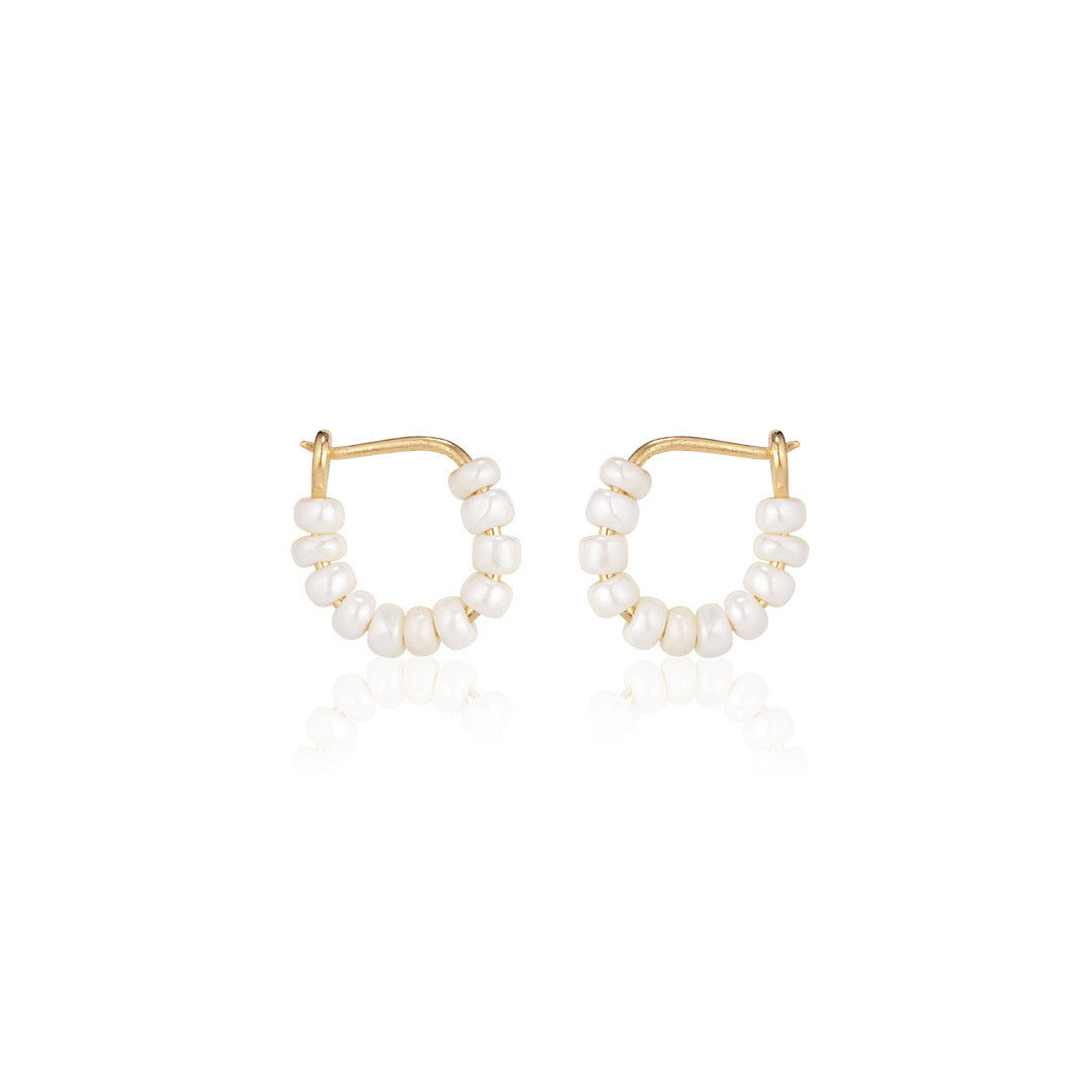 SANTORINI, Perissa Small Bead Hoops, Cream/Golden