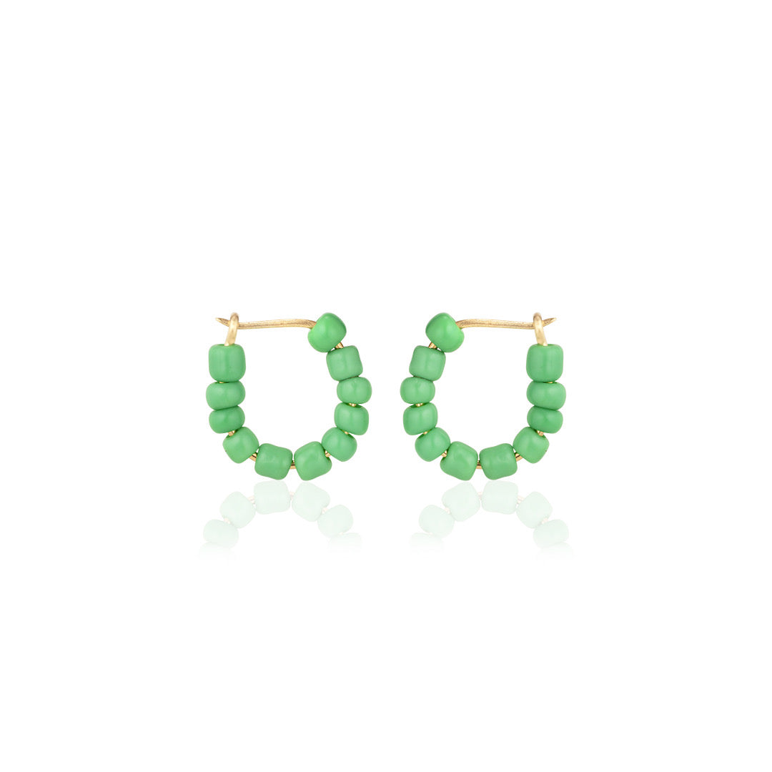 Small, colorfull green-beads huggie to brighten up your every days...