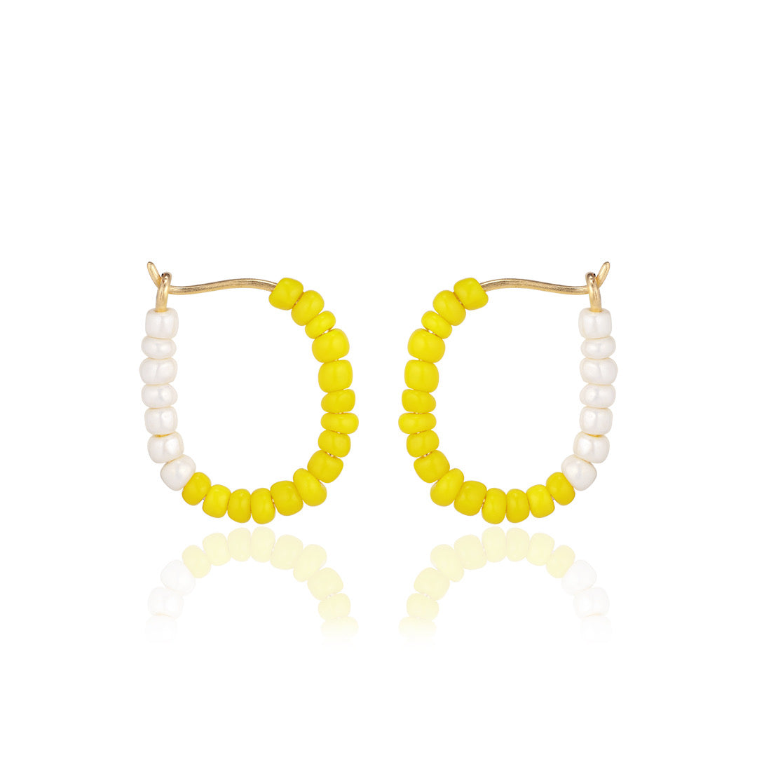 2-colors bright yellow/cream-beads huggie made to brighten up your every days...
