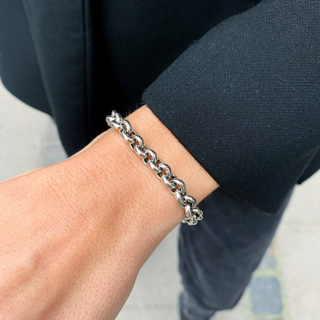Cool, chunky large soft round links - wear single or style up a mess with other bracelets