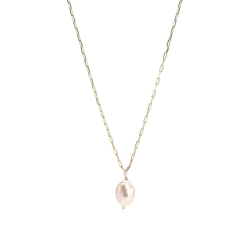 DROPS DELIGHT, Rosy pearl mini-link necklace, Gold/Rosy