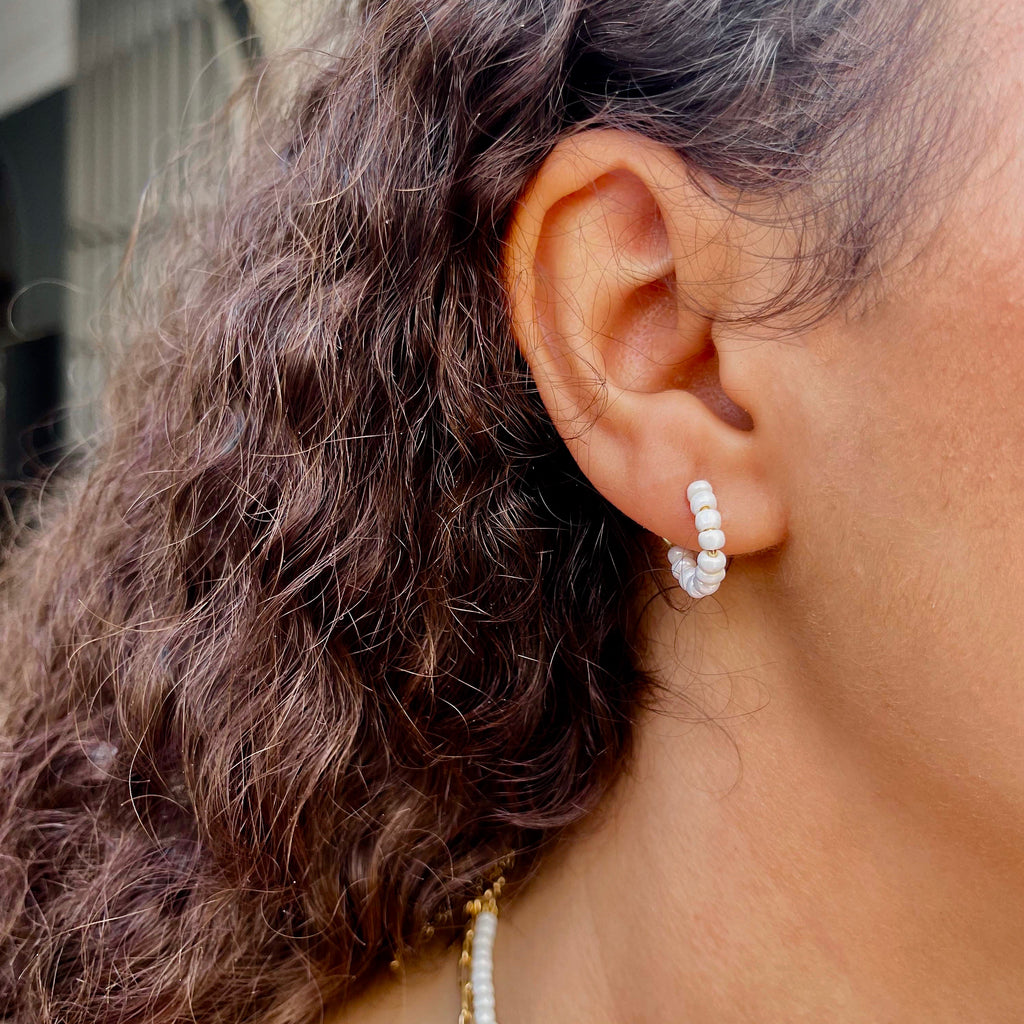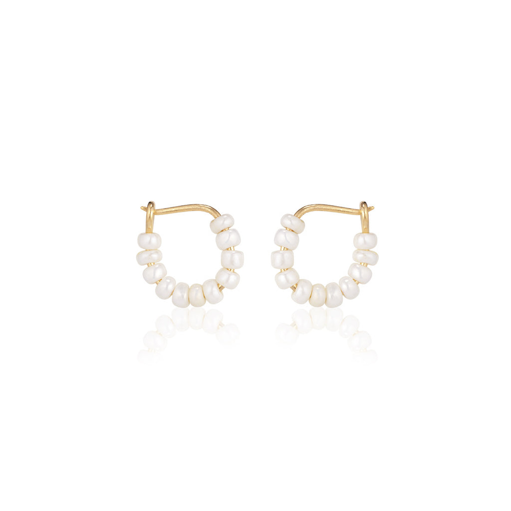 SANTORINI, Perissa Small Bead Hoops, Cream/Golden