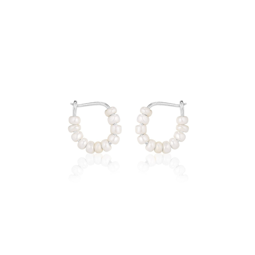 SANTORINI, Perissa Small Bead Hoops, Cream/Silver