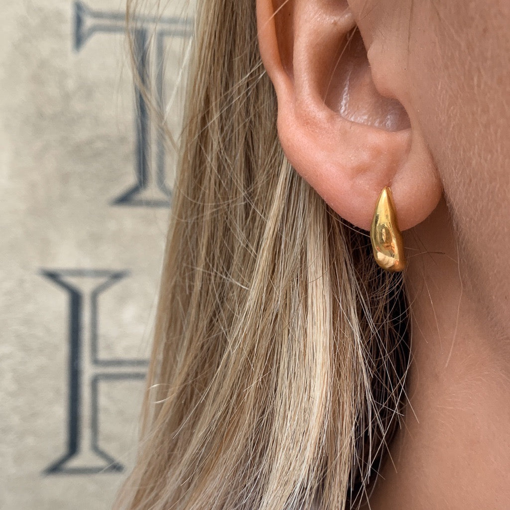 Chunky, yet surprisingly light, boat-shaped hoops showing off a super cool reflection from the wavy SUOMI signature surface ...