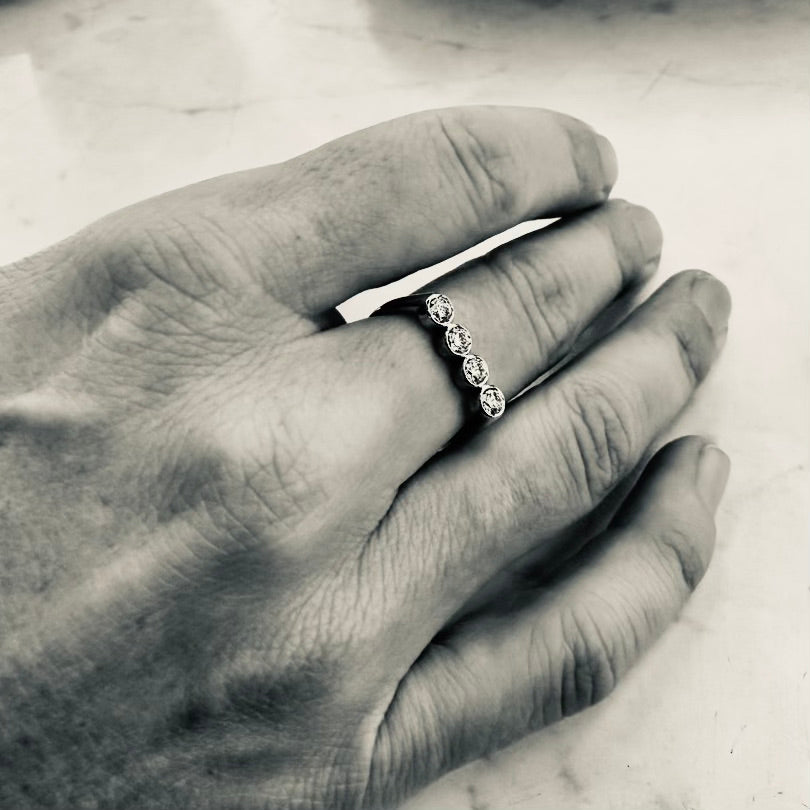 Sleek luxurious new VENICE-Signet style, 4 sparkling front-bezels, set in contrast to the wide cool band.